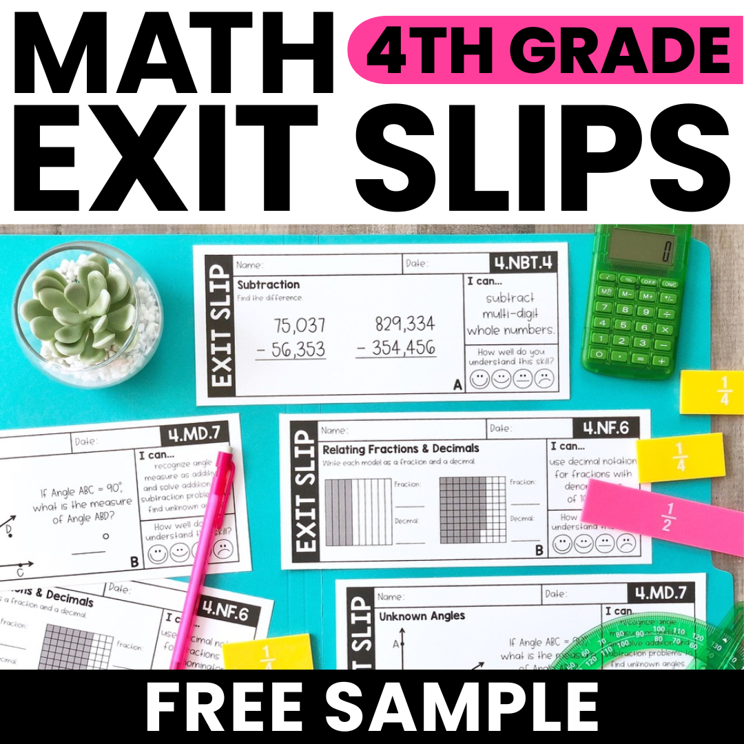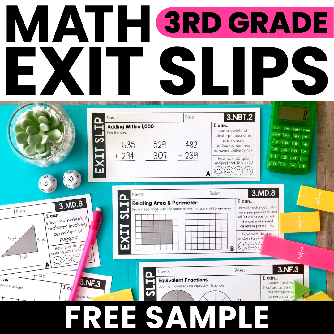 Math Exit Slips are the perfect way to check for understanding. After direct instruction, guided practice, and independent practice, exit slips can give you a quick glimpse into how well your students understand a new concept or skill. Exit slips are quick and easy to assign and correct, giving you a chance to see what mistakes students are making, which students need re-teaching, and how you might need to modify your lessons.